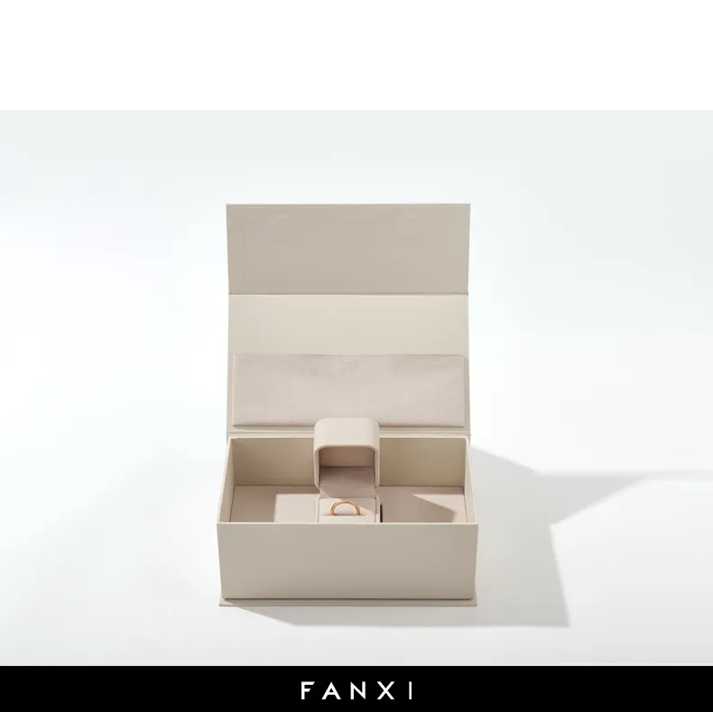 H06001031A02 FANXI Custom beige leatherette paper jewelry box-FANXI