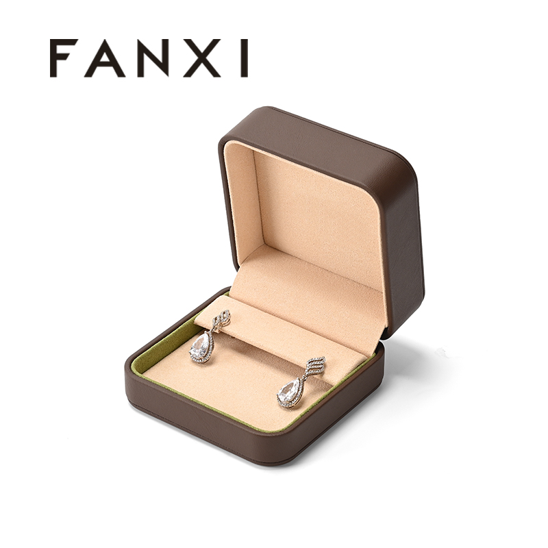 FANXI Custom Brown PU Leather Microfiber Earring Box H06803046A01