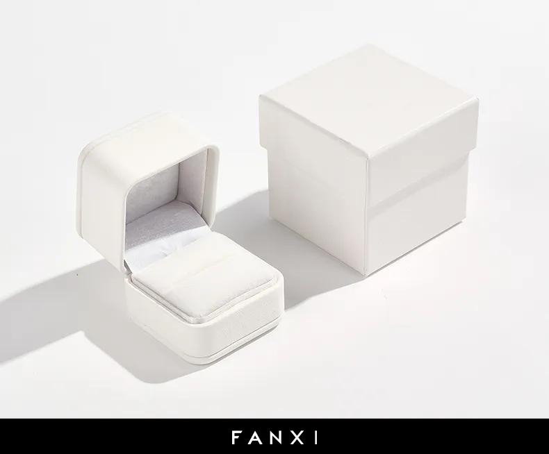 H11102029A01 FANXI Custom white leather and velvet ring box-FANXI