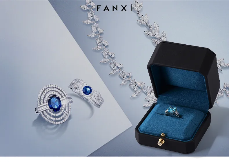 H0760124031501201 FANXI Custom blue leather microfiber jewelry box-FANXI