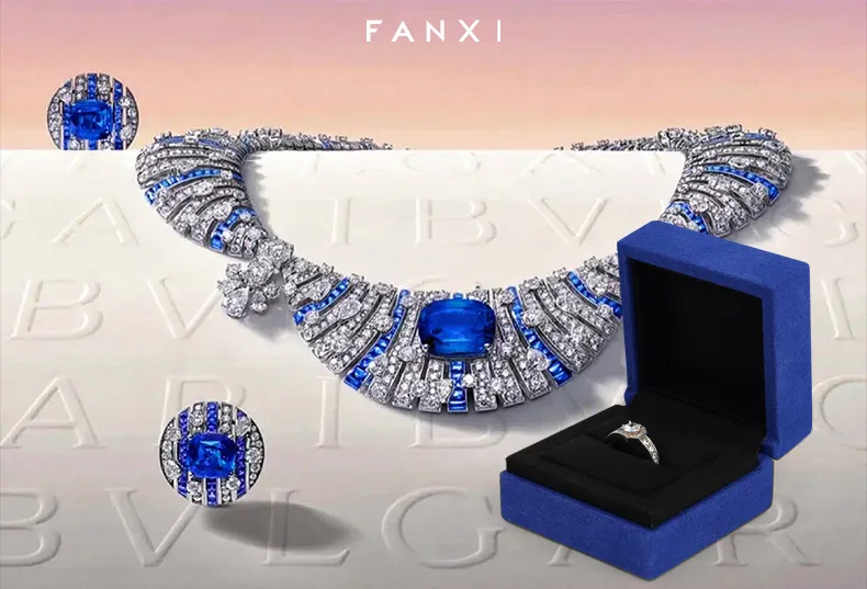 HD024A01 FANXI Custom blue microfiber jewelry box