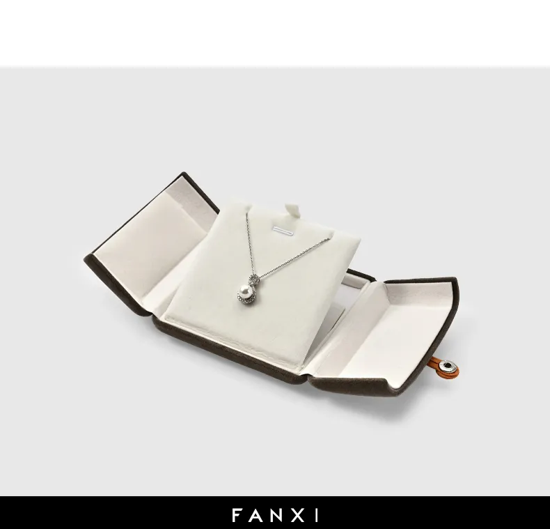 FANXI Custom brown velvet pendant earring box H009006A07 -FANXI